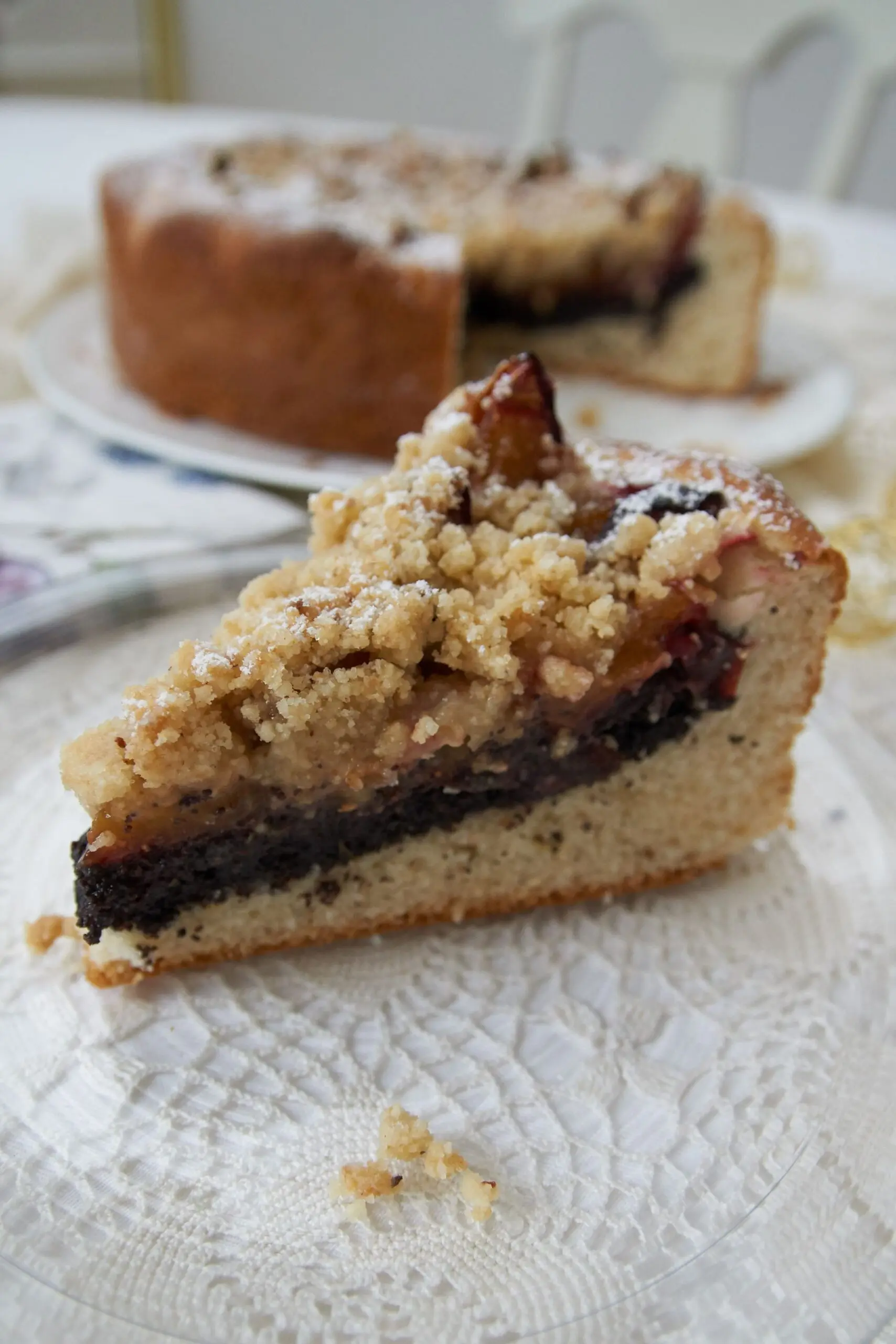 Eine aromatische Mohnfülle umhüllt von einem Topfen-Öl-Teig – das ist die Grundlage meines Zwetschken-Streusel Kuchens. Belegt mit saftigen, geviertelten Zwetschken und bestreut mit knusprigen Haselnussstreuseln ist es ein relativ unkompliziertes Rezept, perfekt für die herbstliche Familienjause. Ein unkompliziertes Rezept, das saisonale Zutaten in den Mittelpunkt stellt und für stimmigen Genuss sorgt.