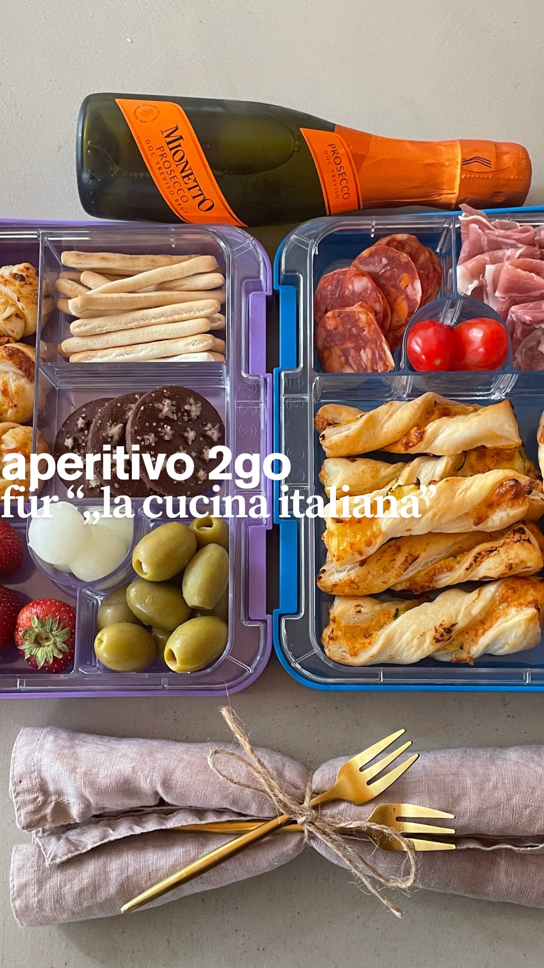 Ein Aperitivo für unterwegs: handlich verpackt in der Jausenbox. Perfekt zum Genießen, Teilen und das Leben zwischendurch zu feiern.