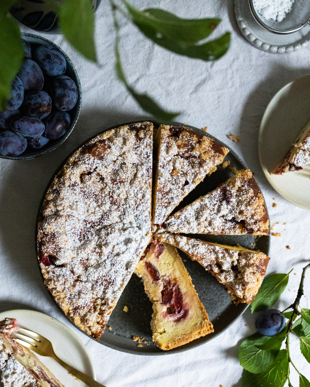 Der Zwetschgen-Streusel-Käsekuchen vereint cremige Käsekuchenfüllung, saftige Zwetschgen und knusprige Streusel in einem köstlichen Gebäck. Ein echter Klassiker, der besonders im Spätsommer und Herbst beliebt ist. Das Besondere: Boden und Streusel bestehen aus demselben Teig, was die Zubereitung besonders einfach macht. Ob zum Sonntagskaffee, für ein Familienfest oder einfach als kleiner Genussmoment zwischendurch – dieser Kuchen passt immer.